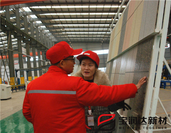 參觀生產(chǎn)線過(guò)程中,寶潤(rùn)達(dá)系統(tǒng)綠色節(jié)能建材產(chǎn)品贏得客戶大力認(rèn)可,寶潤(rùn)達(dá)自動(dòng)化生產(chǎn)制造、現(xiàn)場(chǎng)管理等各方面也給客戶留下了深刻印象。