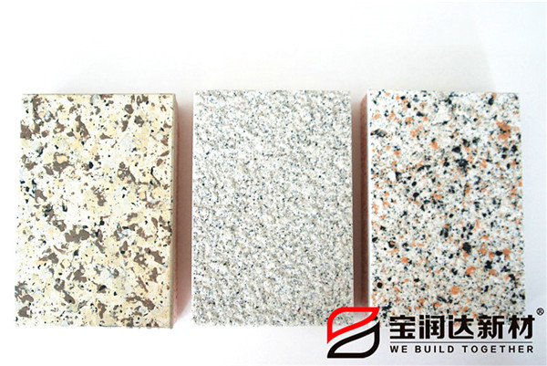 寶潤達一體板飾面層采用真石漆,多彩漆,水包水,水包砂,乳膠漆,實色/金屬氟碳超3000種顏色定制,可根據石材定做樣品
