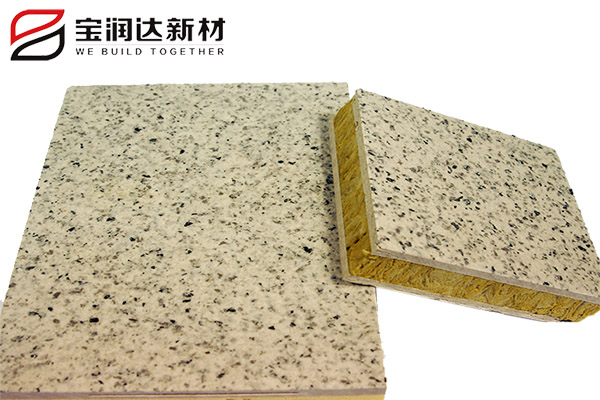 寶潤達一體板飾面層采用真石漆,多彩漆,水包水,水包砂,乳膠漆,實色/金屬氟碳超3000種顏色定制,可根據石材定做樣品